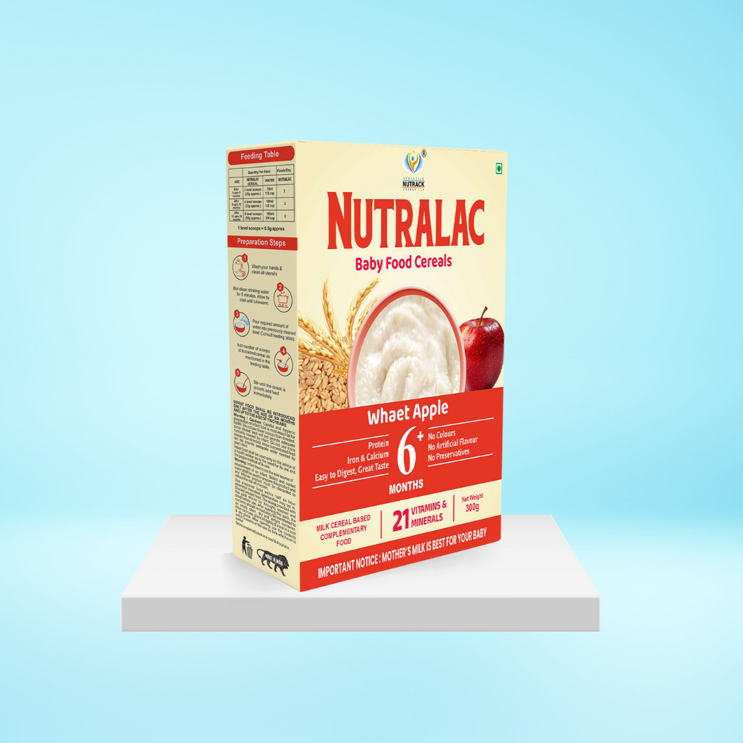 Give your baby a nutritious start with Nutralac Baby Food Cereal – Wheat & Apple. Specially formulated for infants 6 months and above, this wholesome cereal combines the goodness of carefully selected wheat grains and real apples, providing a delicious, easy-to-digest meal that supports healthy growth and development.